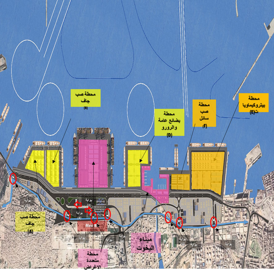 - ميناء متكامل بطول أرصفة تصل إلى 7 كم تقريبا ويضم 7 محطات تخصصية.